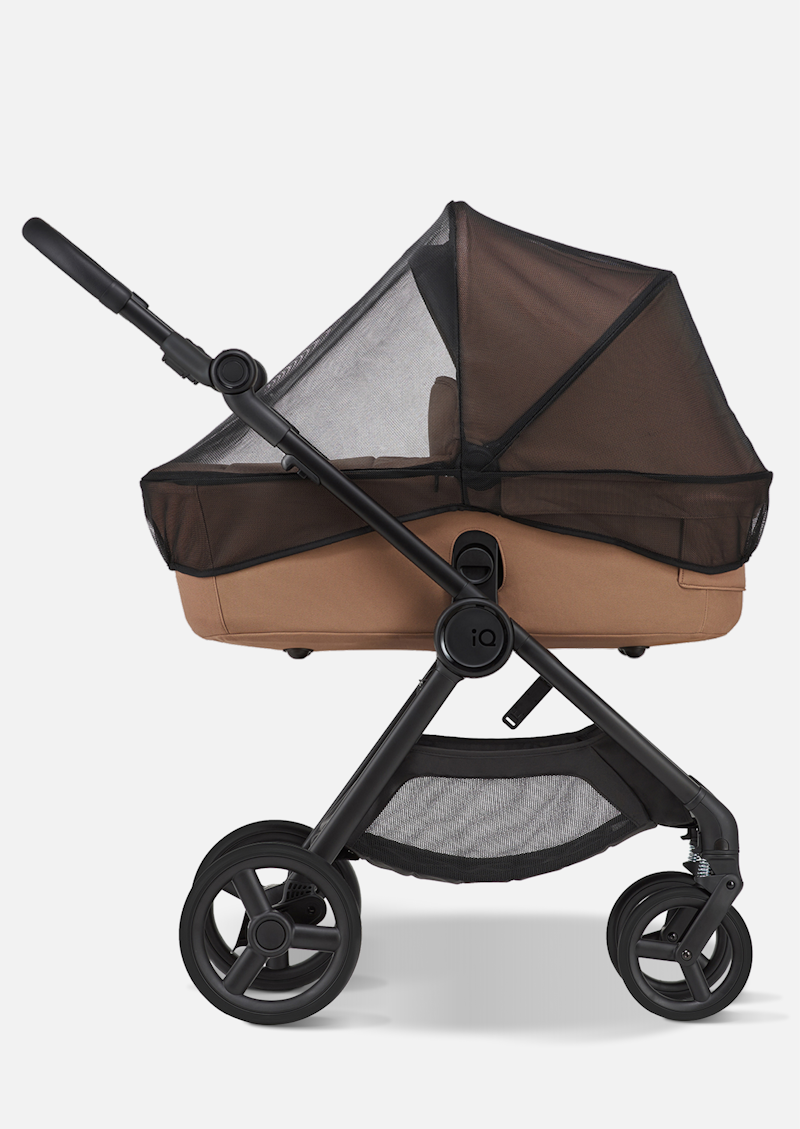 Капюшон коляски 2 в 1 Anex iQ Basic с дополнительной секцией предоставляет дополнительную защиту от солнечных лучей и ветра. Он легко снимается, что облегчает использование люльки и обеспечивает возможность ее чистки.