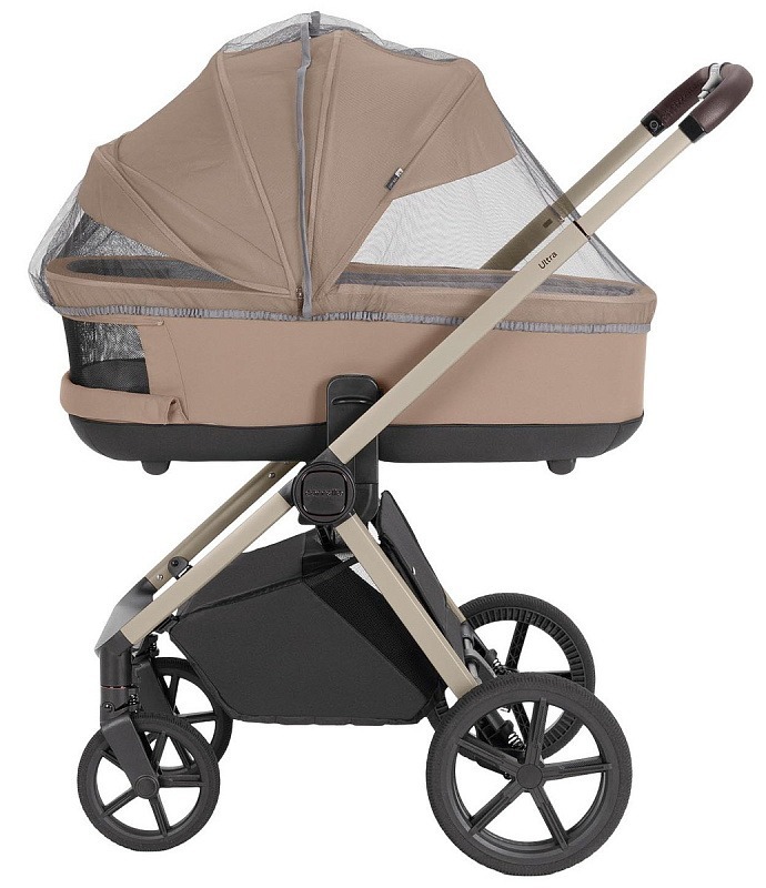В комплект Carrello Ultra 2 в 1 входят  универсальные москитная сетка и дождевик, обеспечивающие защиту от насекомых и непогоды.  Элегантная и вместительная сумка с креплениями на раму позволяет брать с собой все необходимые вещи для малыша.