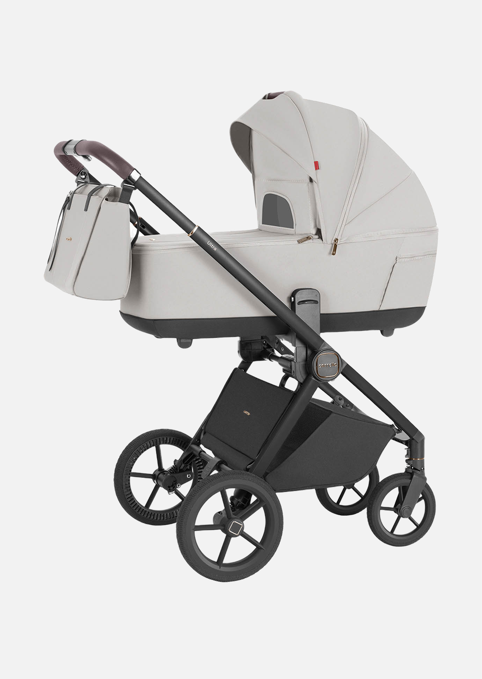 В комплект Carrello Ultra 2 в 1 входят универсальные москитная сетка и дождевик, обеспечивающие защиту от насекомых и непогоды. Элегантная и вместительная сумка с креплениями на раму позволяет брать с собой все необходимые вещи для малыша.
