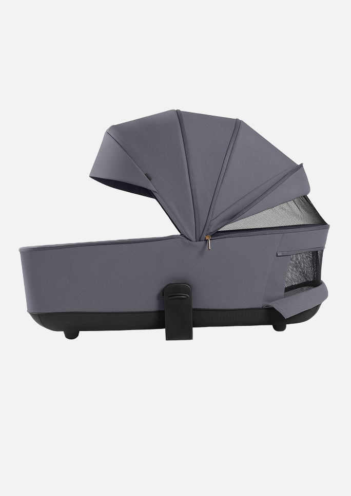 Жесткое основание люльки обеспечивает необходимую поддержку для спины ребенка, что способствует правильному формированию его осанки. Кроме того, чехол матрасика и внутренний вкладыш люльки можно легко снять для стирки, что гарантирует гигиеничность и свежесть. Адаптеры с системой "Memory Button", встроенные в модули коляски, позволяют легко менять высоту модулей, что значительно упрощает взаимодействие с коляской для каждого члена семьи, будь то мама, папа или бабушка.