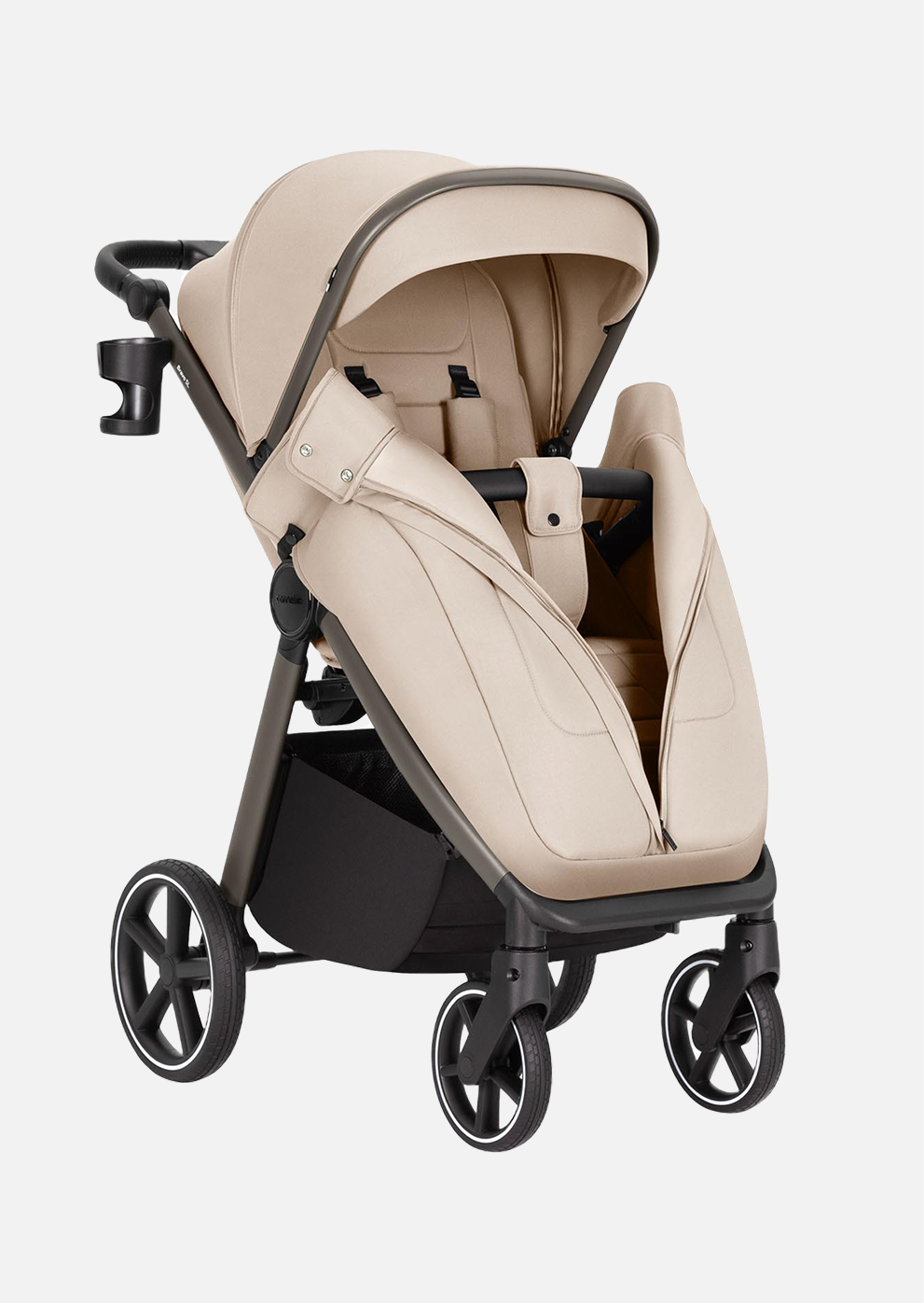 В комплект входит утеплённый стёганый чехол на ножки с удобной молнией для быстрого доступа к ребёнку. Также предусмотрены полезные аксессуары: подстаканник и москитная сетка для защиты от насекомых.