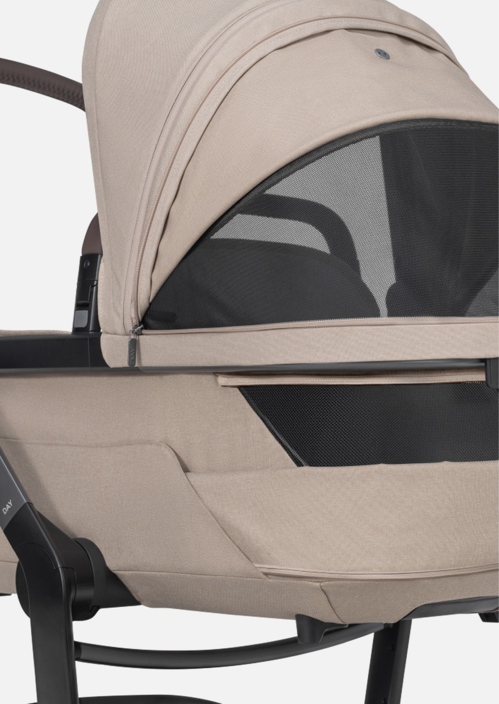Большой капюшон защитит от непогоды. Огромный кап Day5 раскладывается до бампера и создает уютный кокон, в котором малыш сможет спрятаться от непогоды и любопытных глаз. Максимум защиты, минимум отвлекающих факторов - для комфортного сна в любых условиях.