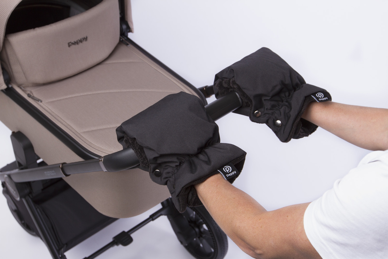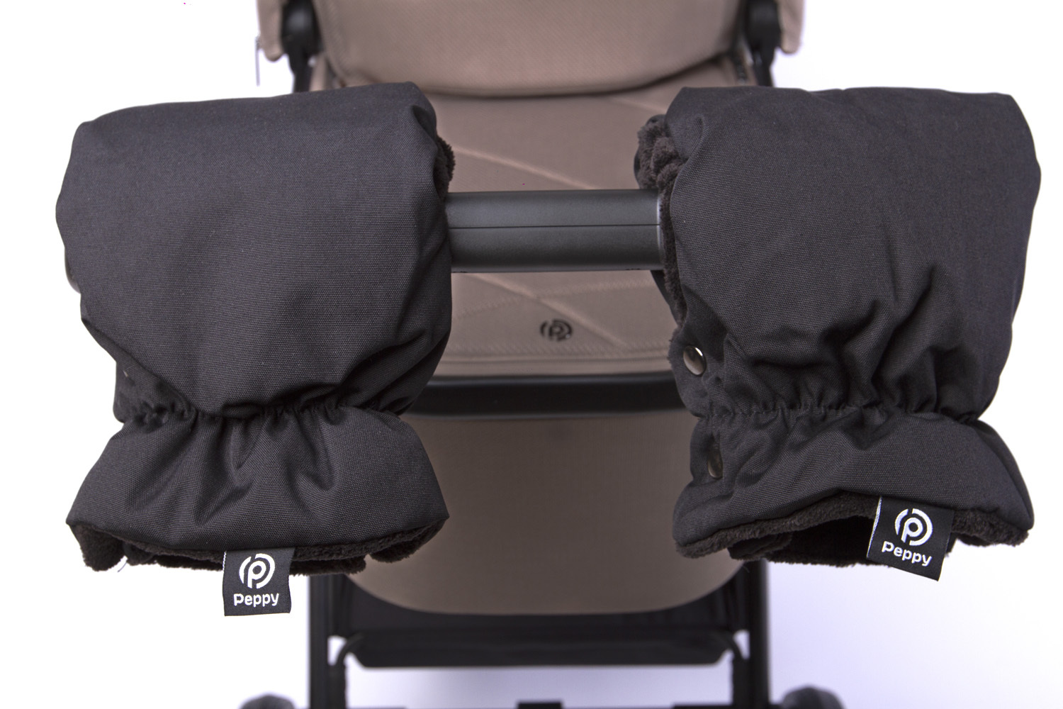 Тёплые муфты Peppy — удобные варежки для ручки коляски, выполненные из мягкого текстиля с подкладкой из флиса. Защищают руки от холода и ветра во время прогулок, легко крепятся на ручку коляски. Практичное решение для комфортного ухода за ребёнком в прохладную погоду.
