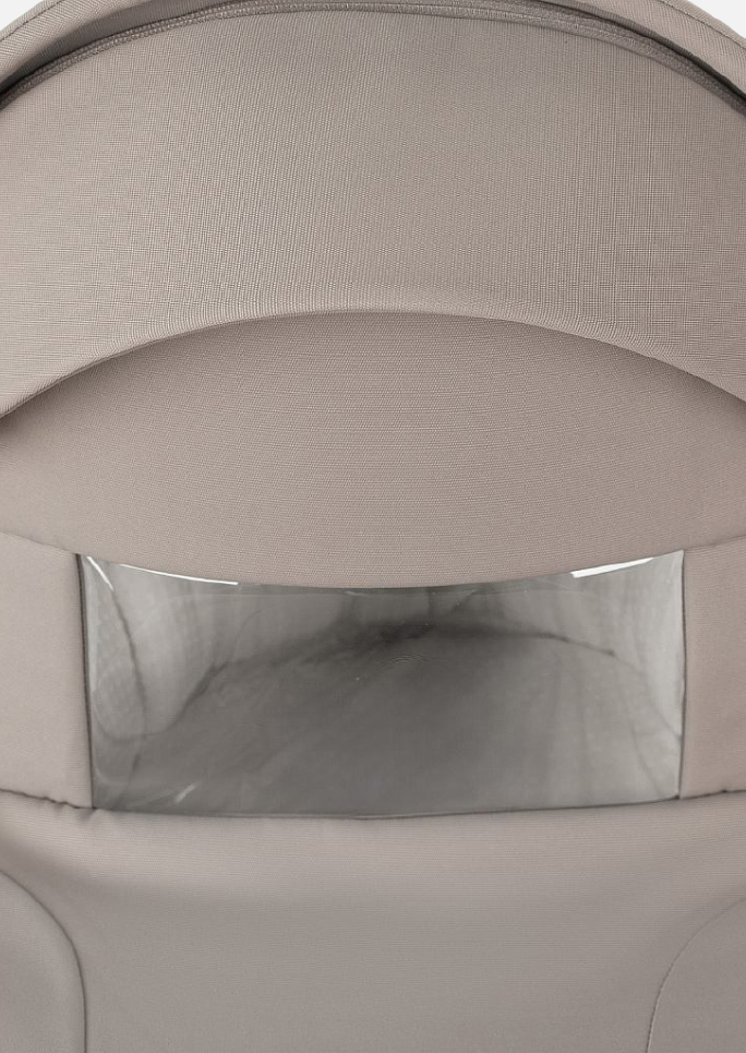 Капор люльки оборудован ручкой для переноски, имеется съемный козырек, дополнительная секция, климатическое окно под молнией в корпусе люльки и в капюшоне.