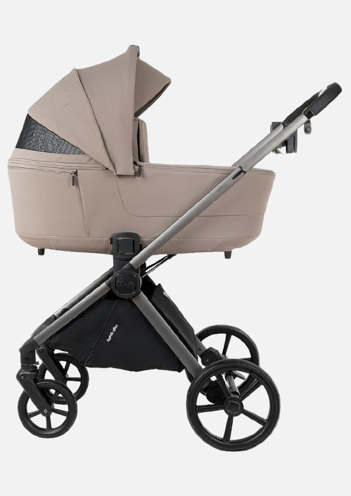 Отделка внутренней части люльки выполнена из хлопковой натуральной ткани, имеется дополнительный бортик для использования коляски в зимний период. Новый матрасик- гипоаллергенный и обладает антибактериальными свойствами. Двусторонний, из ткани и 3D-сетки. 3D-структура с более чем 80% объема воздуха. Внутри матрасика дышащий материал AirZone 3D.