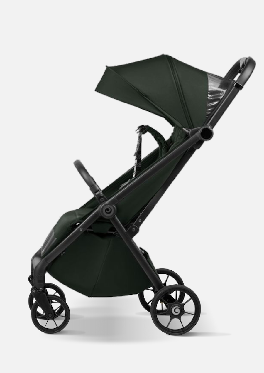 • Тормозная система One-Click. Широкий, удобный тормоз активируется одним нажатием, моментально обеспечивая надежную фиксацию коляски.